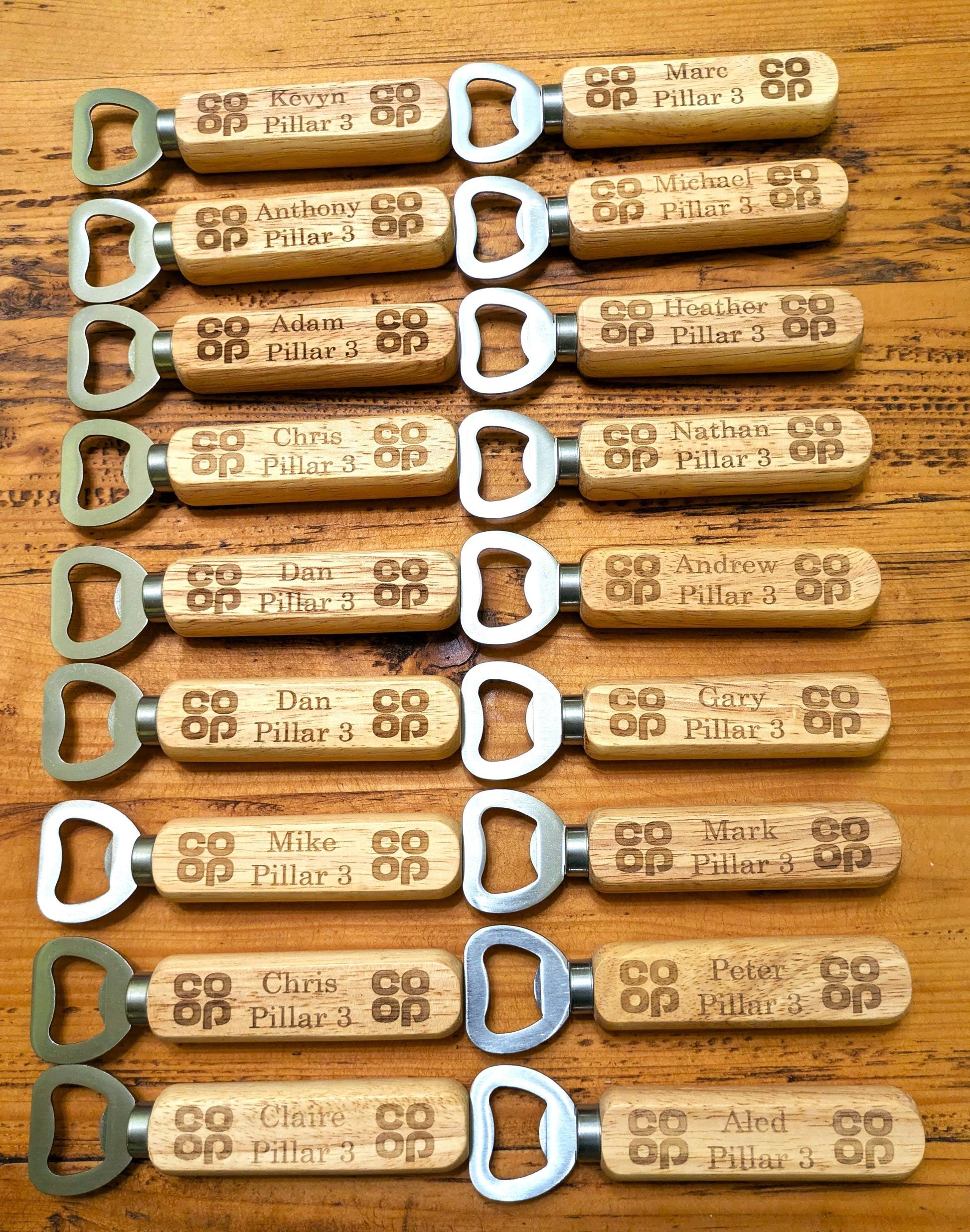 Whether it's a name, date, funny quote, or short message – your customisation makes it truly one-of-a-kind. ✨ Product Features: Made from durable metal with a smooth wooden handle Professionally laser engraved for a long-lasting finish Personalised with your choice of text (name, date, quote, etc.) Compact and easy to carry – great for home bars, picnics, BBQs & travel Ideal gift for him, her, dad, mum, groomsmen, or the beer enthusiast in your life 🎁