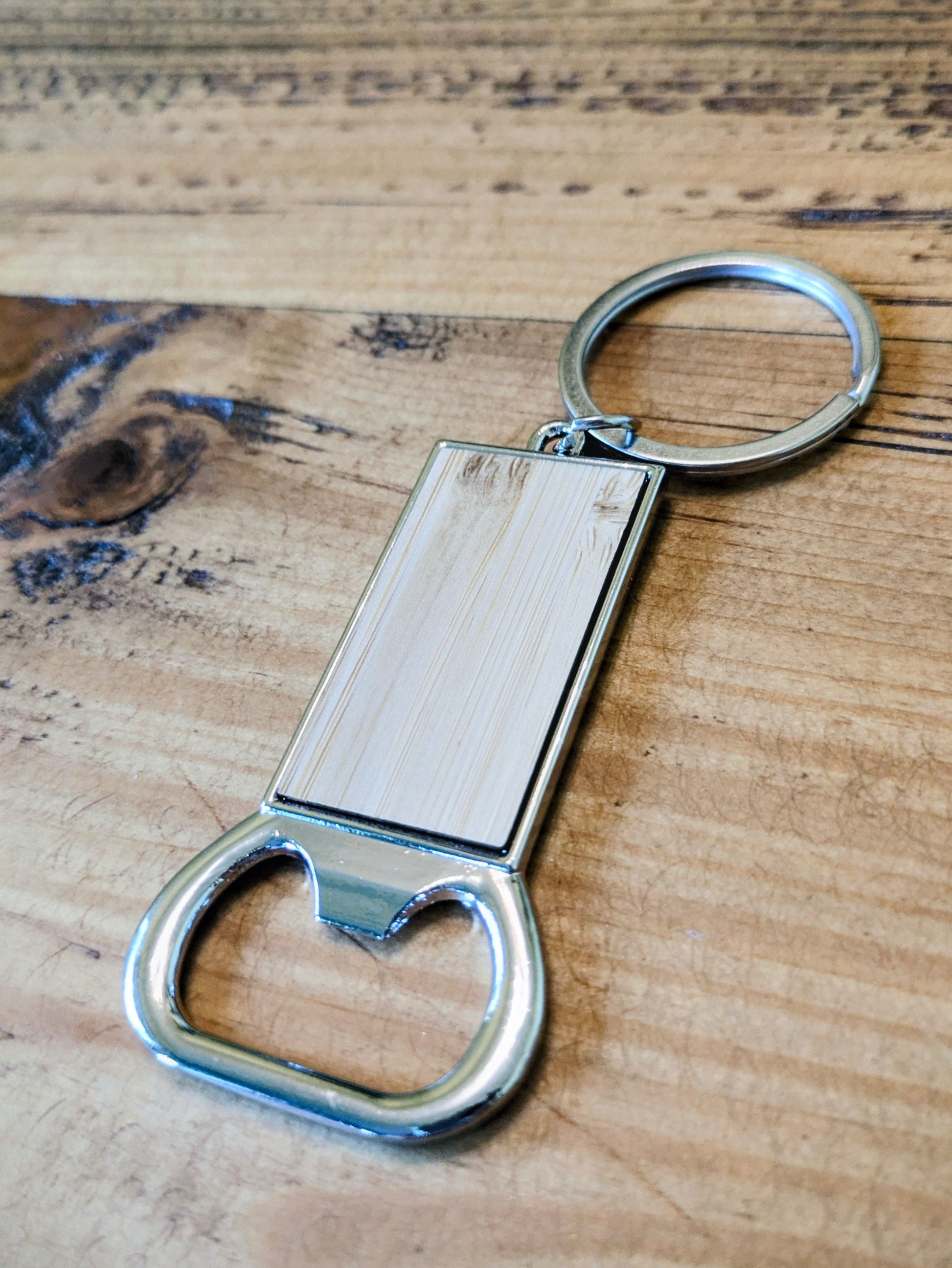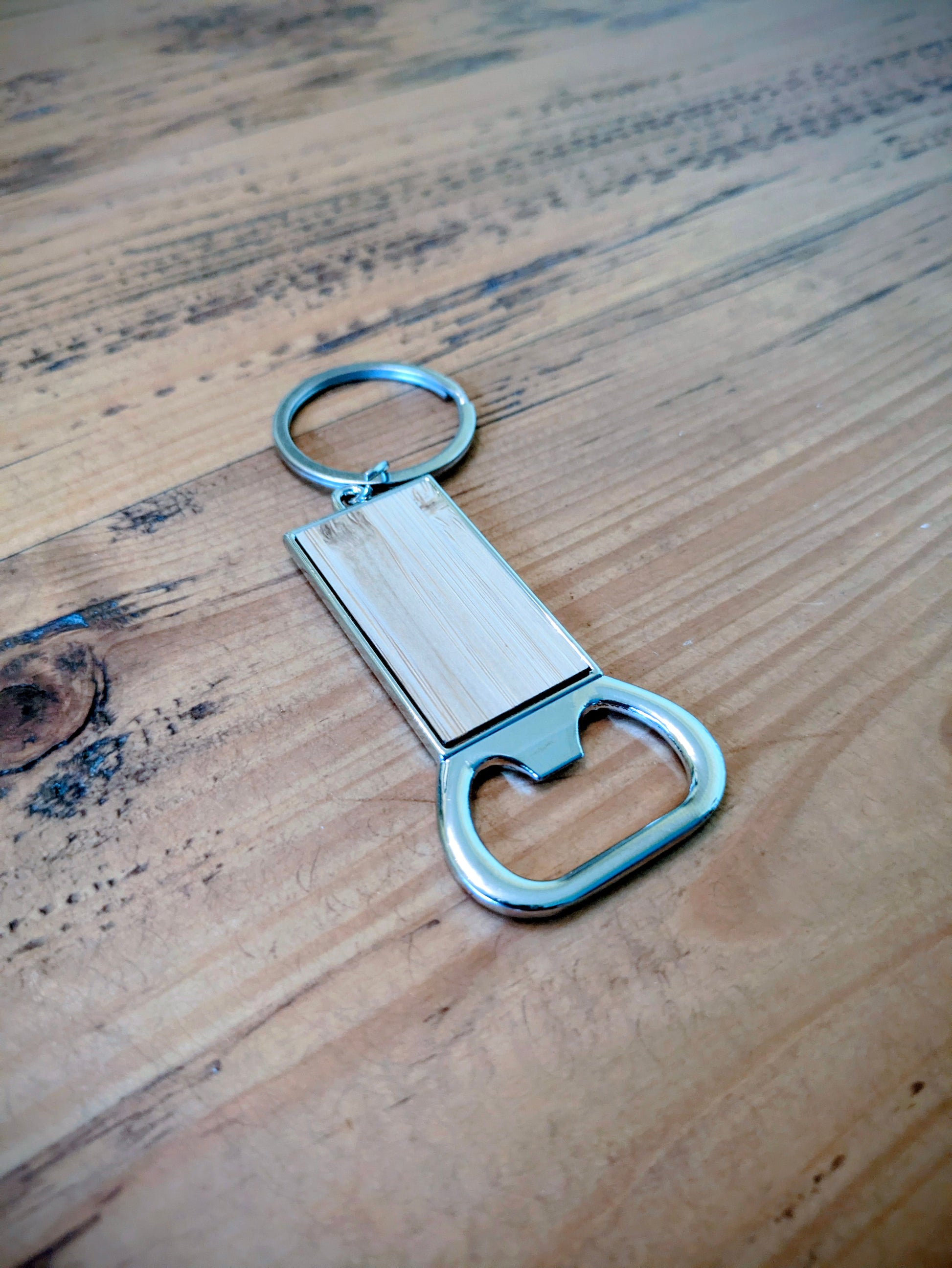 Laser Engraved Bottle Opener Keyring – Wood & Metal
